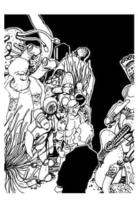A collection of finished and unfinished ink drawings from over the years. There are brand new, never published drawings, and images from my webcomic The 388th, and my graphic novel series The Fed. Some of the art comes from live drawings from The Richness Art Channel Drawstream.